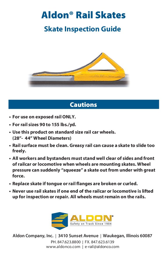 - Never use rail skates if one end of the railcar or locomotive is lifted up for inspection or repair. All wheels must remain on the rails.
