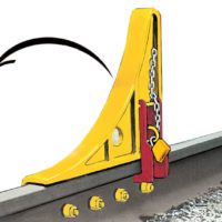 Equipped with a padlock for locking in upright or lowered positions. Car Stops should always fold to the field side of the rail when installed properly.