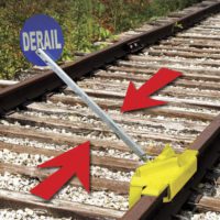 If 6-axle locomotives will enter your rail yard, use SaberTooth® Portable Two-Way Locomotive Derail, Item #: 4014-08-S Click Here