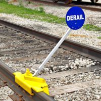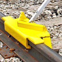 Two-Way SaberTooth® Portable Railcar Derail for 4-axle locomotives and all freight cars.