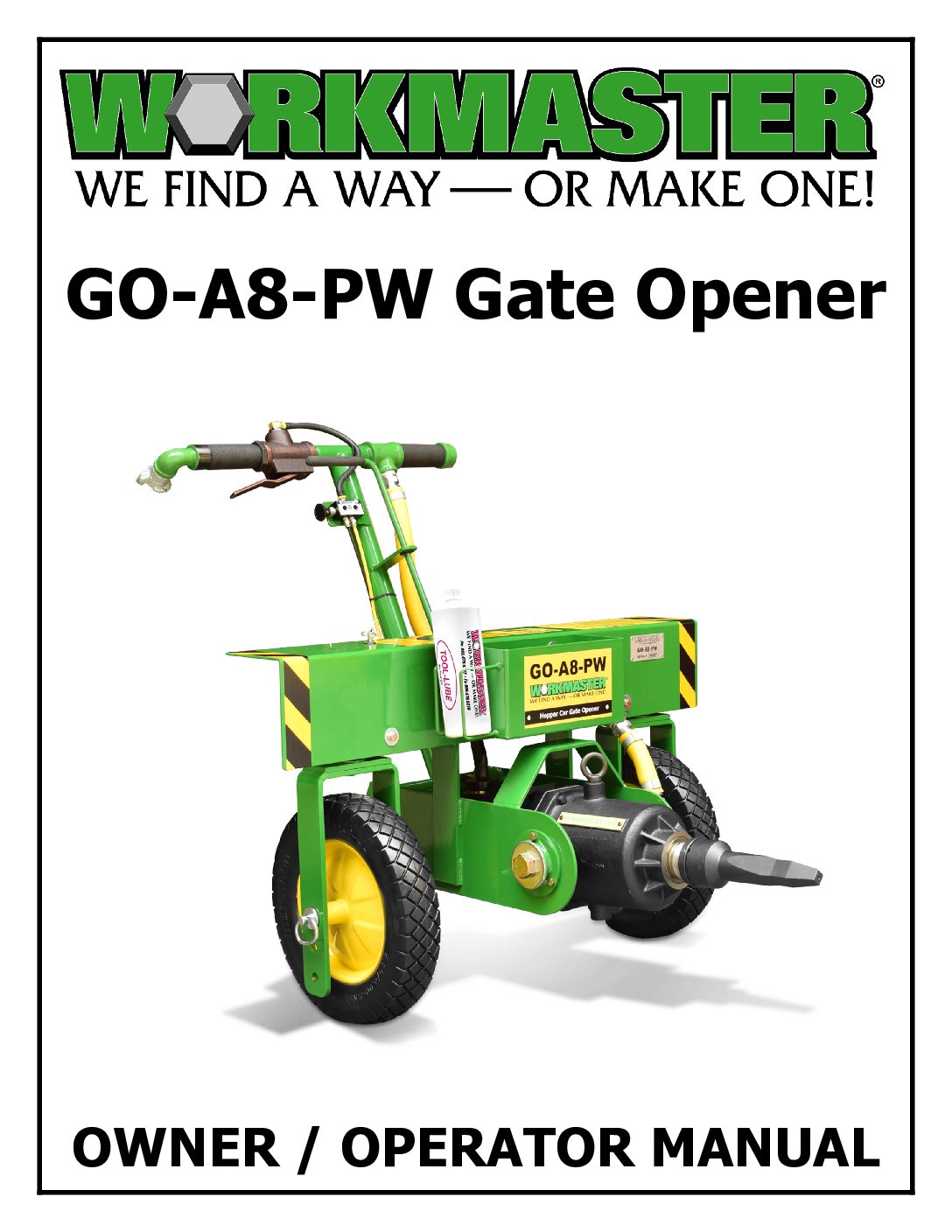 The impact wrench produces up to 13,000 ft.-lbs. of torque at 85 psi. Requires 114 cfm air volume for best performance. Hose connection 1" universal style coupling. Rubber tires can be flipped sideways to move the workMaster from gate to gate. Self-closing lever throttle, wheel pivot and forward-reverse controls are all grouped together.