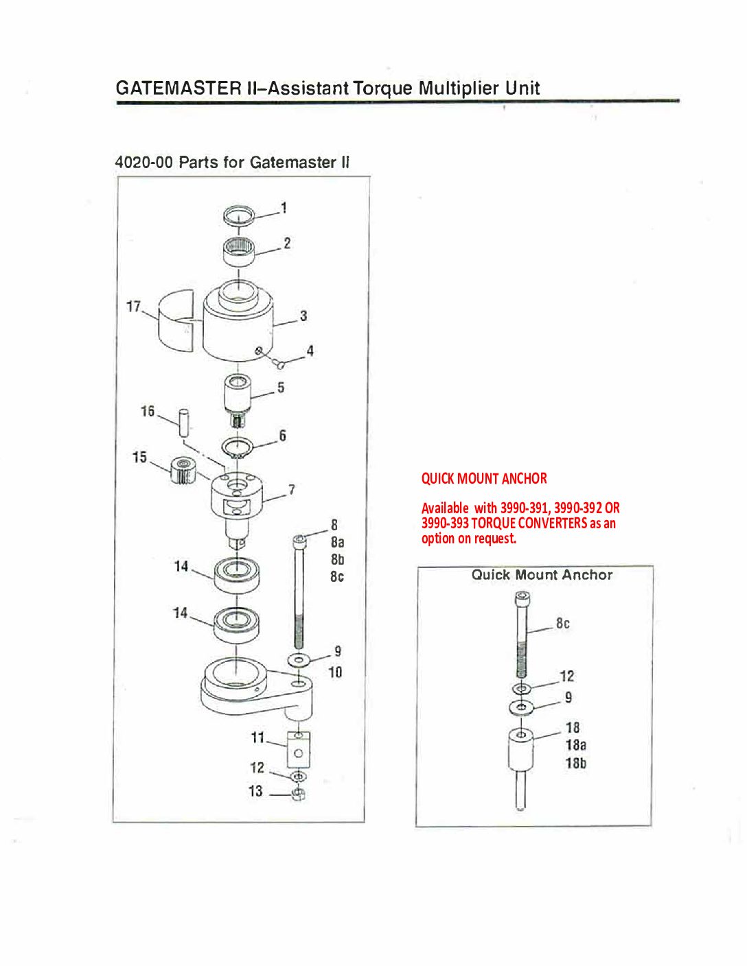 • Gatemaster II includes a torque multiplier, reducing the input effort to only 35 lbs.