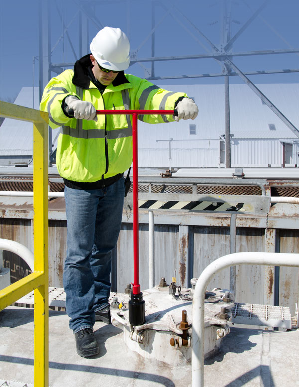 Useful where 200 ft./lbs. or less torque is needed to loosen or tighten manway cover bolts.