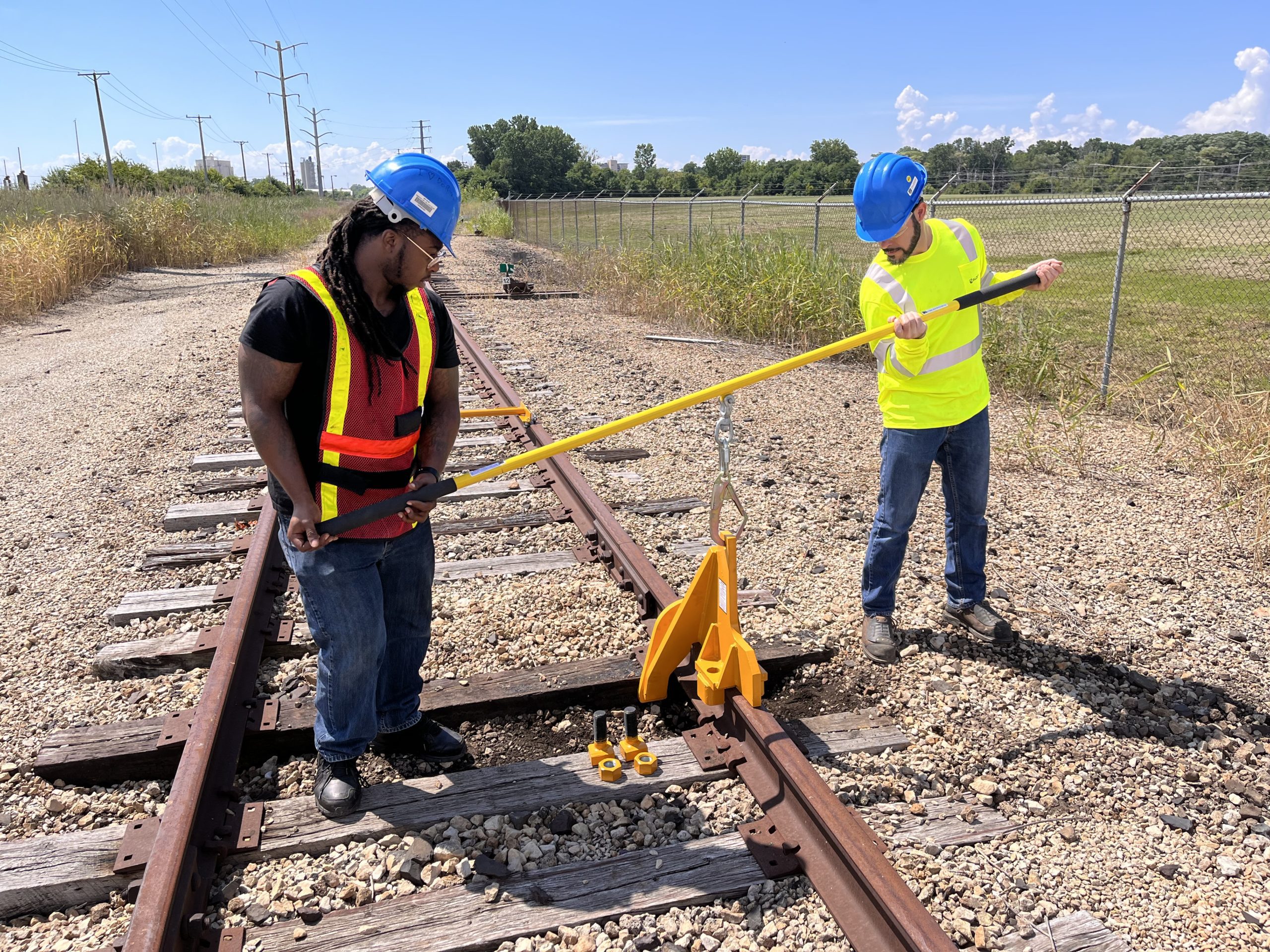Our Two-Man Carrying Pole is ideal for carrying heavy items such as rerailers and derails.