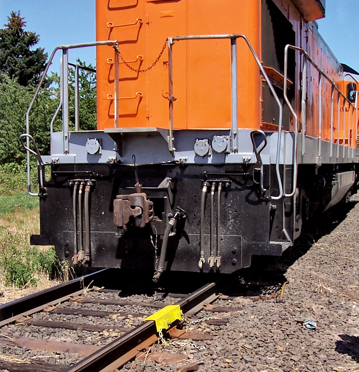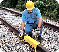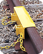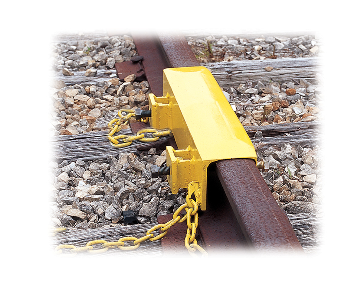 An emergency bridge for broken or badly chipped rail. No need to stop train movement when rail cracks. Fits all rail sizes. Rail splint bolts to web of rail. Assembles with a hand wrench. Safety chains wrap around nearest tie at each end to minimize slippage.