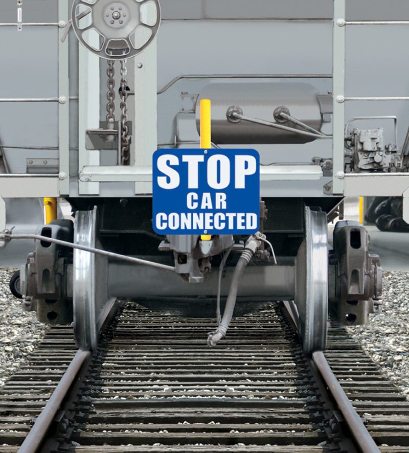“STOP: TANK CAR CONNECTED” sign