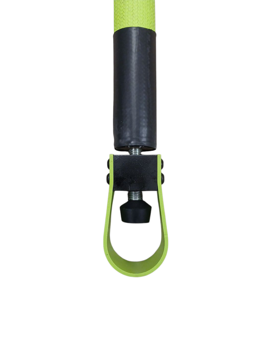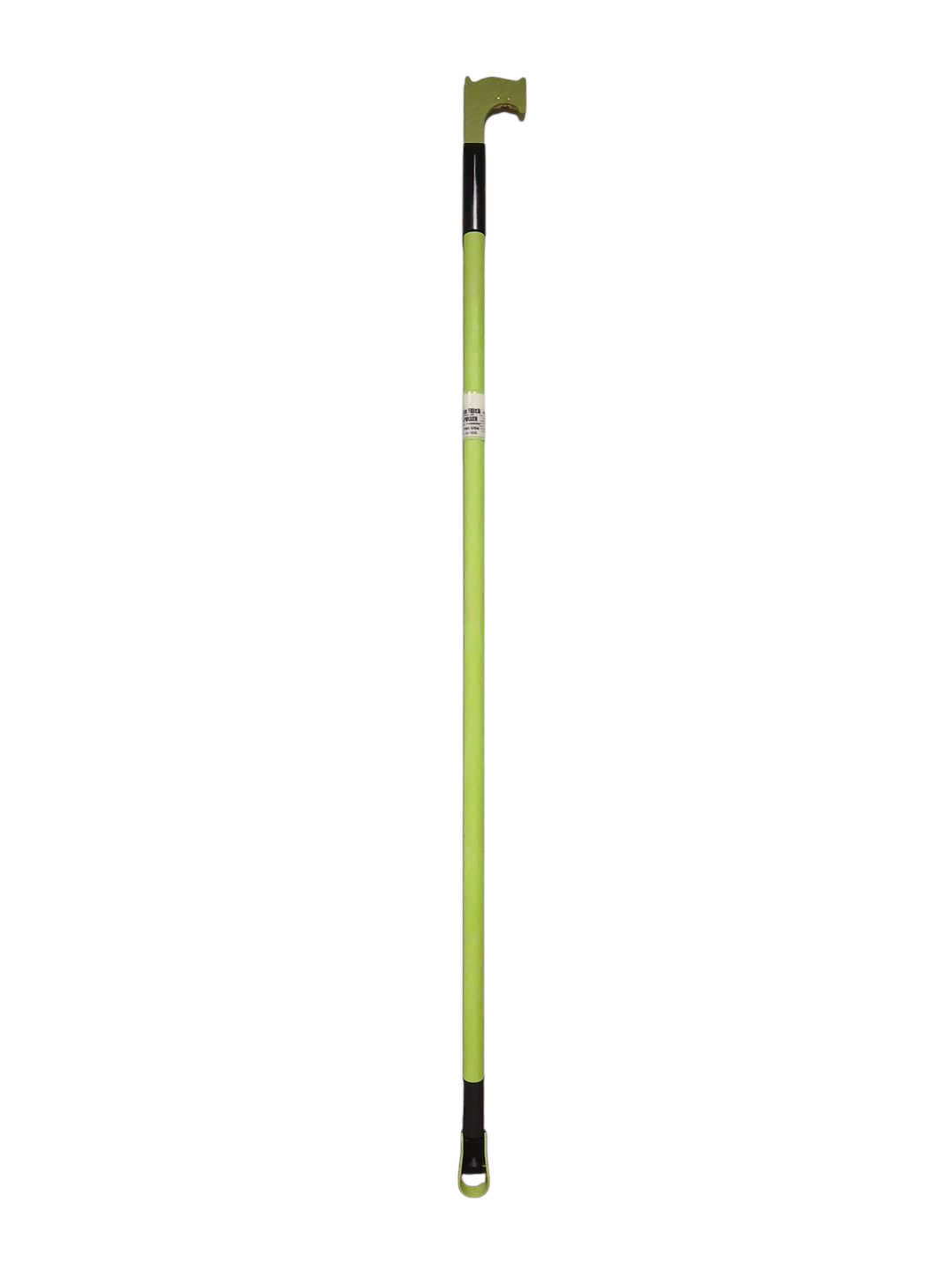 The Center Pin Puller allows a worker to lift the center pin from the railcar truck frame from a safe distance. It's light weight carbon fiber design enables the Center Pin Puller to be positioned around the center pin with ease. To lift the center pin from the railcar truck frame, simply twist the handle in a clockwise motion until the center pin is tight enough to lift upwards. The durable hook and handle allows a worker to pull the railcar truck frame out from underneath the railcar.