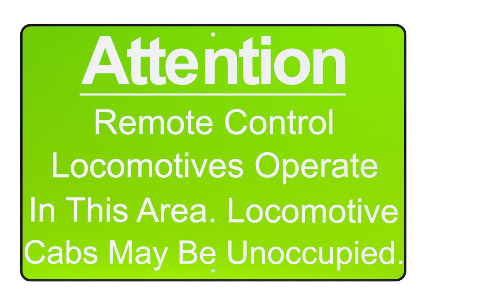 Remote Control Locomotives Sign (Entrances) (Item No. 393-3800) is made to UPRR STD DWG 0555