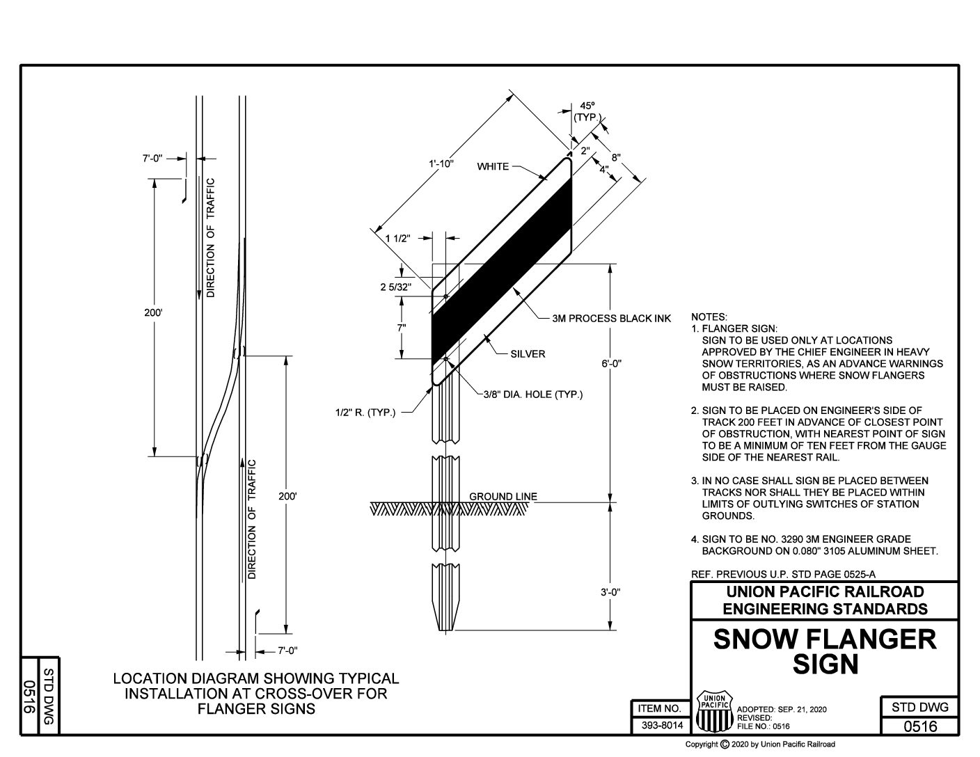 Snow Flanger Sign (Item No. 393-8014) is made to UPRR STD DWG 0516