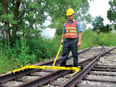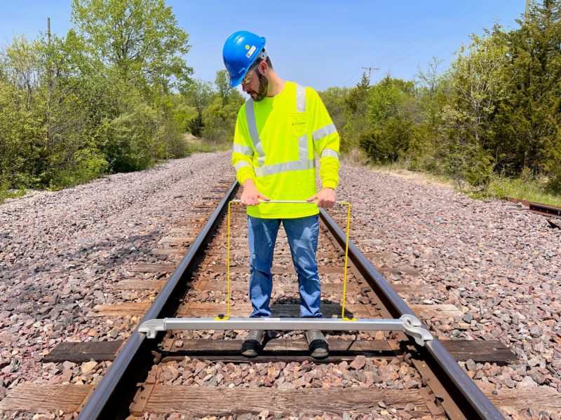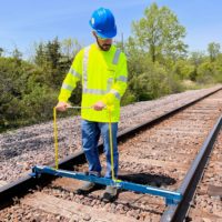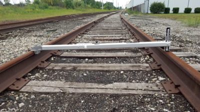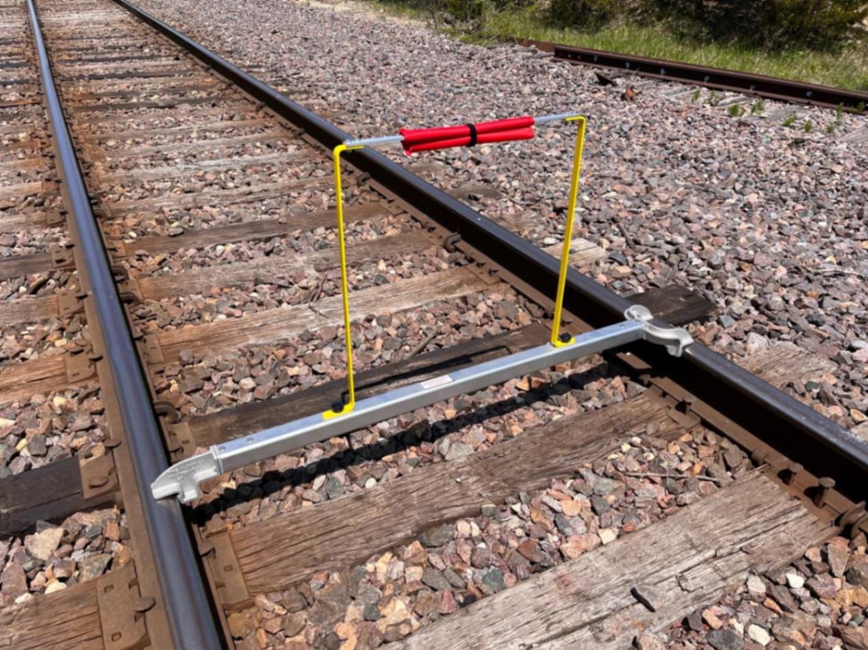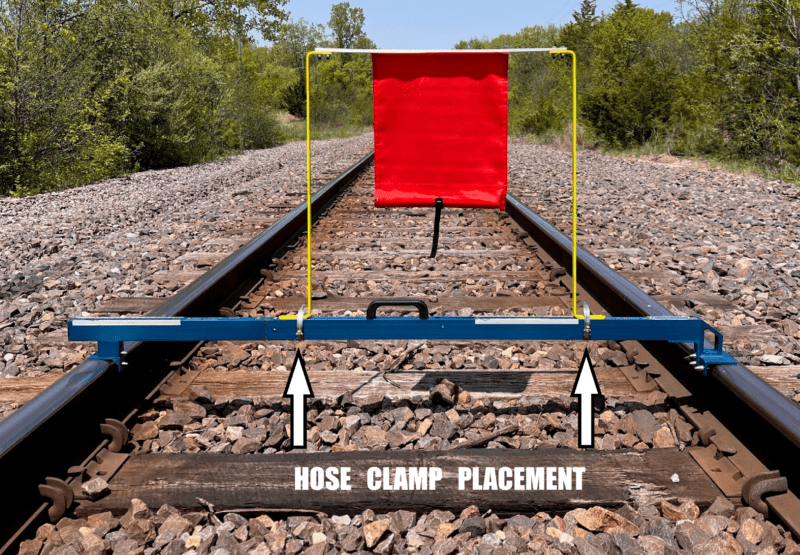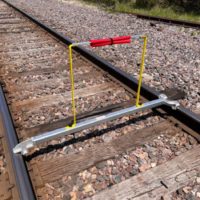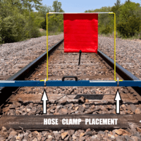 Our Universal Handle for track gauges & levels was designed by a professional railroader with 43 years of experience. It's light-weight durable design allows rail workers to safely measure track gauge without having to constantly bend over. It easily attaches to most handheld gauges or elevation tools using clamps or thumb screws. A red flag can be quickly attached to provide protection while track inspection is in progress.