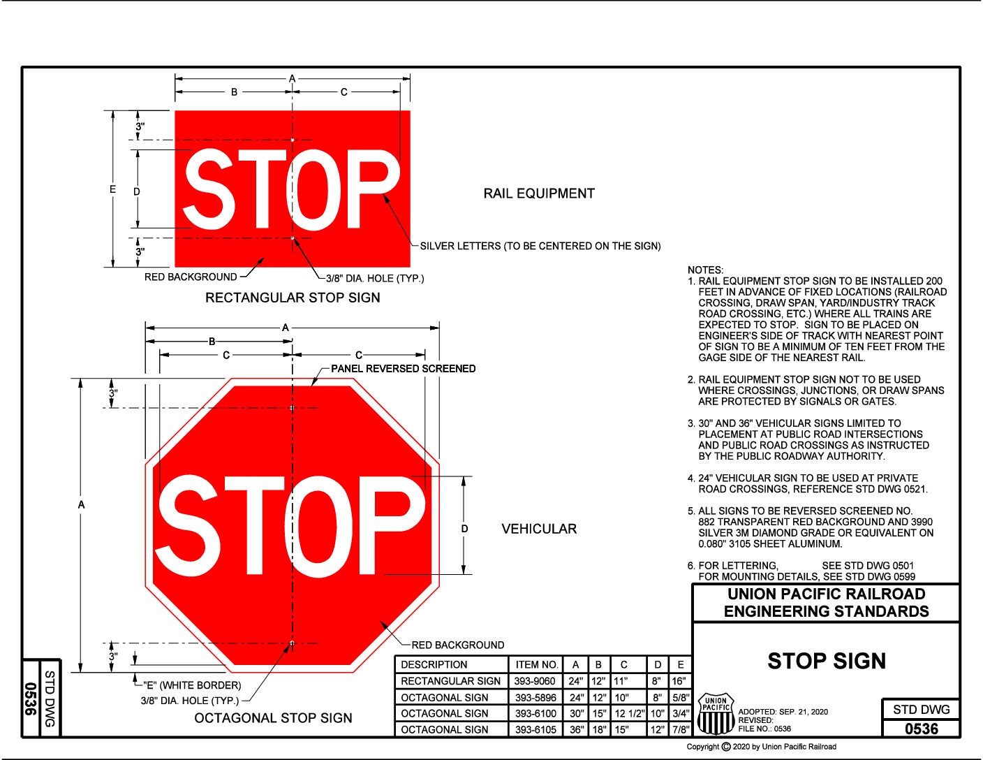 UPRR Stop Signs are made to UPRR STD DWG 0536